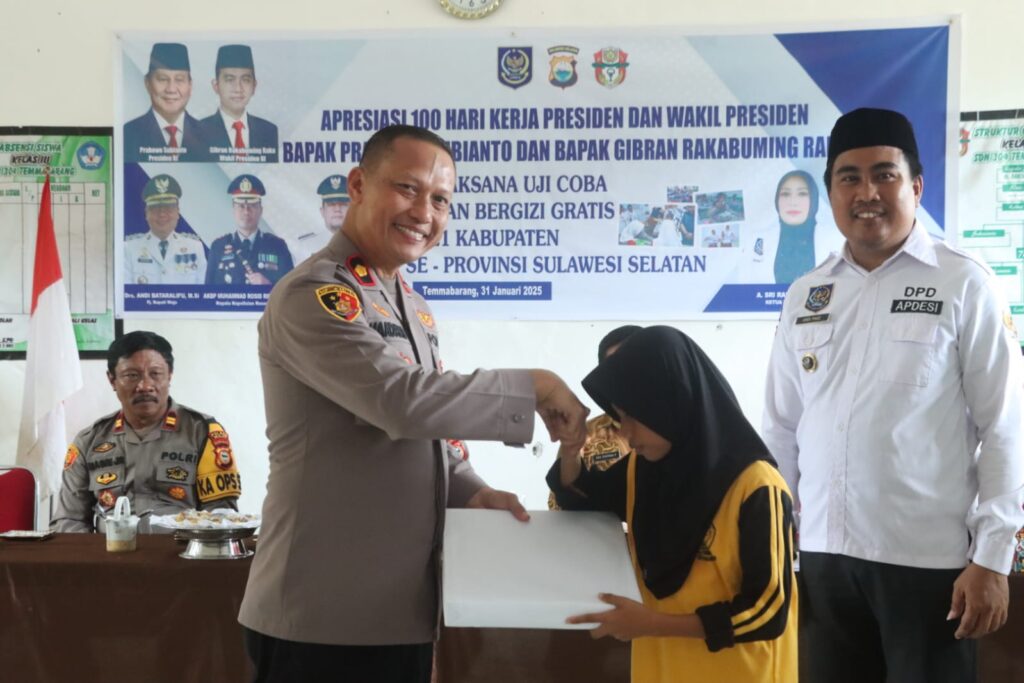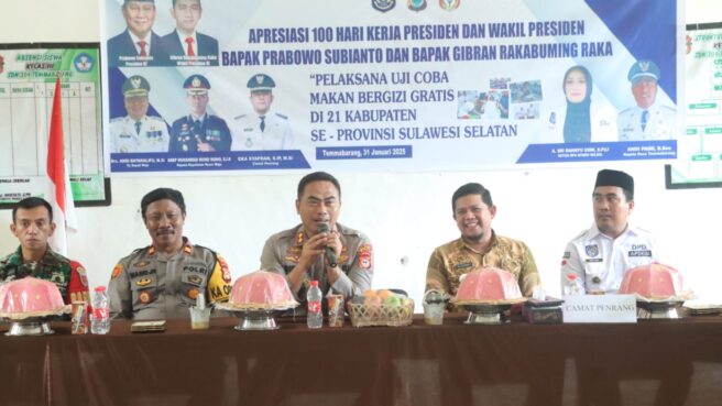 “Kami dari jajaran Polres Wajo siap mendukung dan apresiasi program 100 hari Kerja Presiden dan Wakil Presiden, Uji Coba Makan Siang Gratis Bagi Siswa di Wajo, tetap berjalan lancar,” Ujar Kapolres.