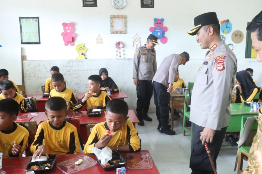 Wajo Sulsel Okeindonesa.online- Kepala Kepolisian Resor (Kapolres) Wajo, AKBP Muhammad Rosid Rhido, S.IK, didampingi Waka Polres Wajo Kompol Hardjoko, S.H.,M.H dan sejumlah Pejabat Utama (PJU) Polres Wajo dalam kegiatan uji coba program makan gratis yang diselenggarakan di SD Negeri 304 Temabarang Kecamatan Penrang Kabupaten Wajo. Jumat (31/1/2025).
