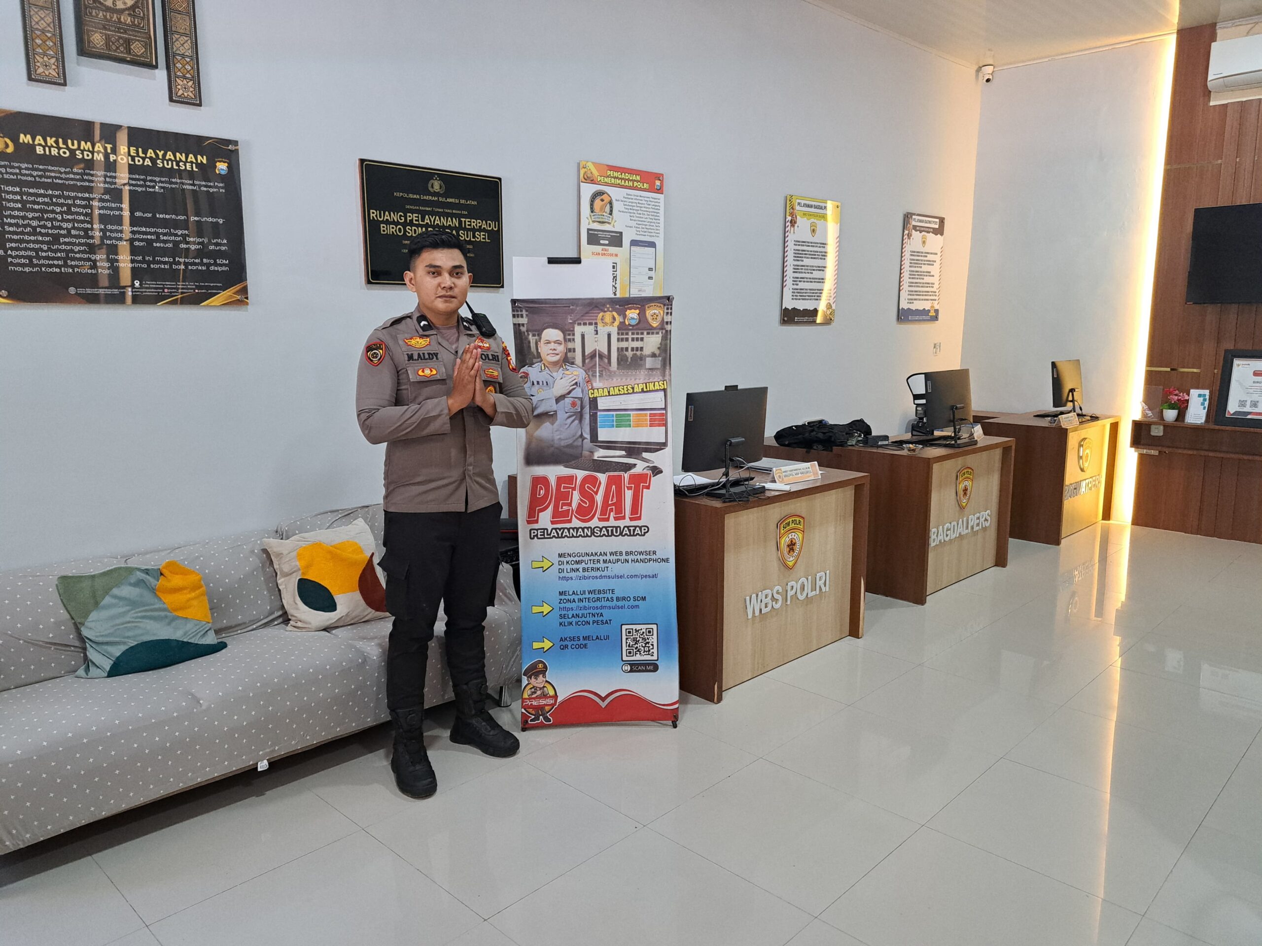 Makassar Sulsel, Okeindonesia.online-Sebagai Bentuk Komitmen dalam meningkatkan transparansi dan kualitas pelayanan publik, Biro Sumber Daya Manusia (Biro SDM) Polda Sulsel merancang sistem pelayanan yang lebih tertata. Salah satu langkah yang diambil adalah meningkatkan fasilitas layanan terpadu satu atap (PESAT) menjadi pusat layanan tamu yang lebih terstruktur.