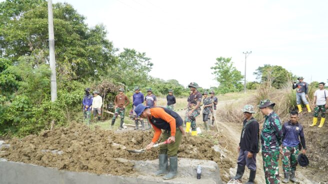 Letda Inf Kamistan menyampaikan bahwa pekerjaan dilaksanakan dengan semangat gotong royong bersama warga sekitar. “Kami terus berupaya agar pekerjaan fisik TMMD ini bisa selesai tepat waktu. Dukungan masyarakat sangat luar biasa dan menjadi semangat tambahan bagi seluruh anggota satgas,” ujar Kamistan di lokasi kegiatan.