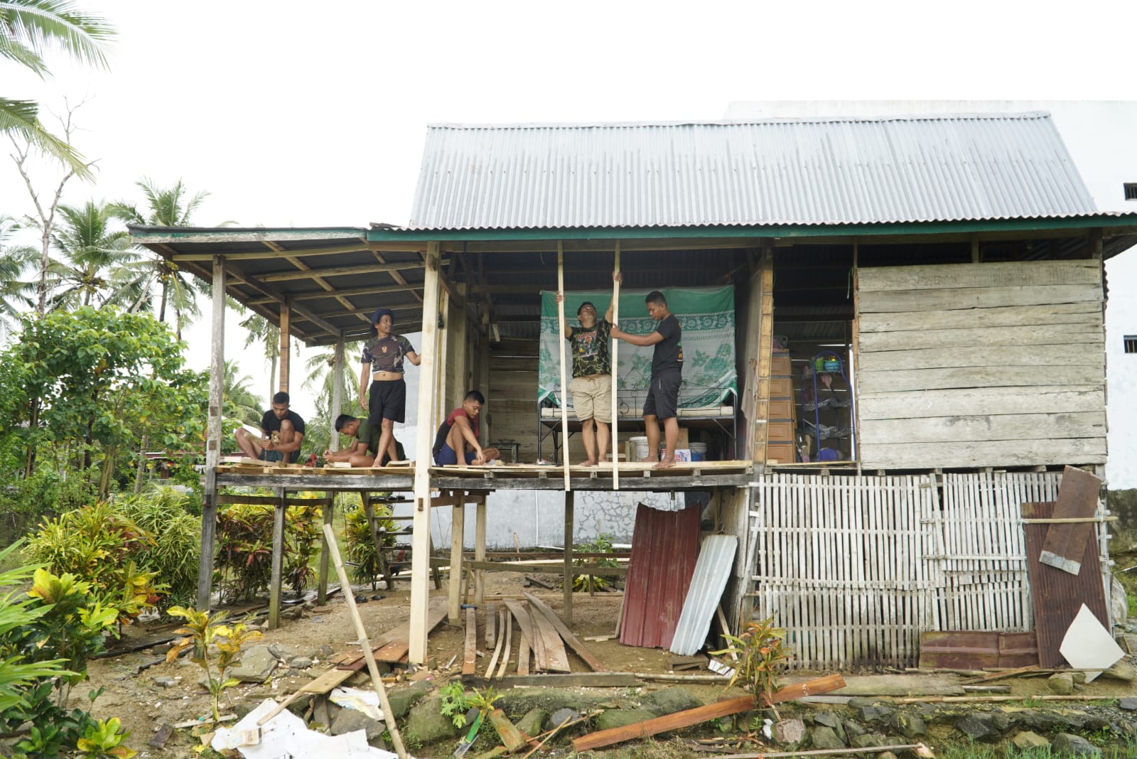 Pekerjaan renovasi RTLH tersebut melibatkan gabungan personel TNI dan warga setempat secara gotong royong. Selain membantu mempercepat proses pengerjaan, keterlibatan warga juga bertujuan mempererat hubungan kemanunggalan TNI dan rakyat.