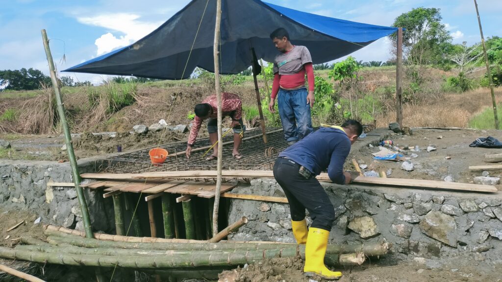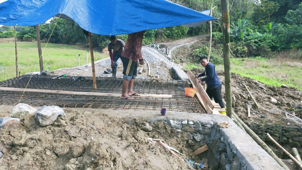 Dipimpin langsung oleh Komandan Satuan Setingkat Kompi (Dan SSK) Letda Arh Abdul Azis, proses pembangunan jembatan kini telah memasuki tahap pemasangan rangka besi sebagai bagian dari persiapan pengecoran. Sebelumnya, tim Satgas telah menyelesaikan pekerjaan pondasi yang menjadi dasar utama kekuatan struktur deker. Tahapan ini dikerjakan dengan ketelitian tinggi, mengingat medan kerja yang tidak mudah serta pentingnya ketahanan konstruksi terhadap aliran air saat musim penghujan.