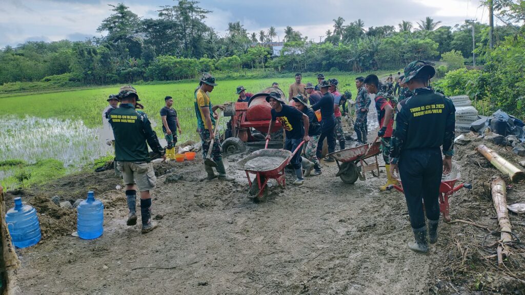 Wajo Sulsel Okeindonesia.online- Senin, 19 Mei 2025 Program TNI Manunggal Membangun Desa (TMMD) ke-124 yang digelar oleh Kodim 1406/Wajo kembali menunjukkan komitmennya dalam mempercepat pembangunan infrastruktur di wilayah pedesaan. Memasuki hari ke-14 pelaksanaan, Satgas TMMD melanjutkan pembangunan sebuah deker atau jembatan kecil di Desa Temmabarang, Kecamatan Penrang, Kabupaten Wajo. Pekerjaan ini menjadi sorotan karena tergolong dalam kategori program over prestasi, yakni program tambahan yang sebelumnya tidak tercantum dalam Rencana Garis Besar (RGB) kegiatan TMMD.