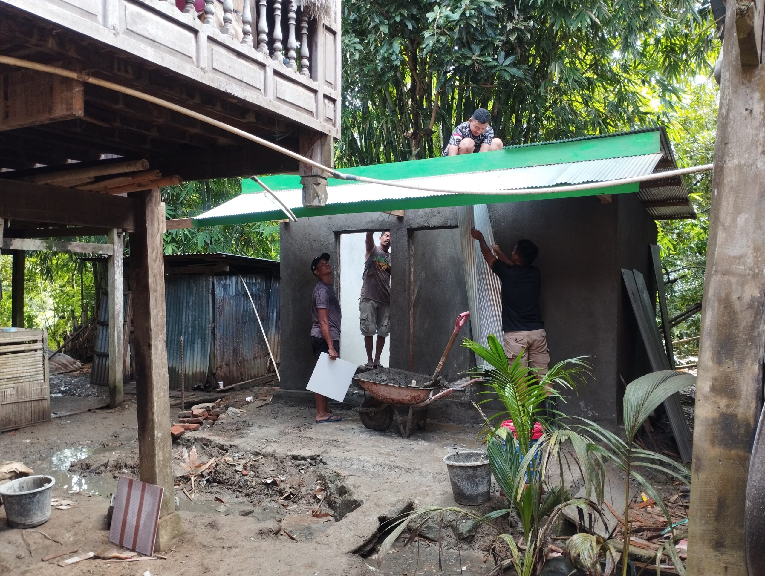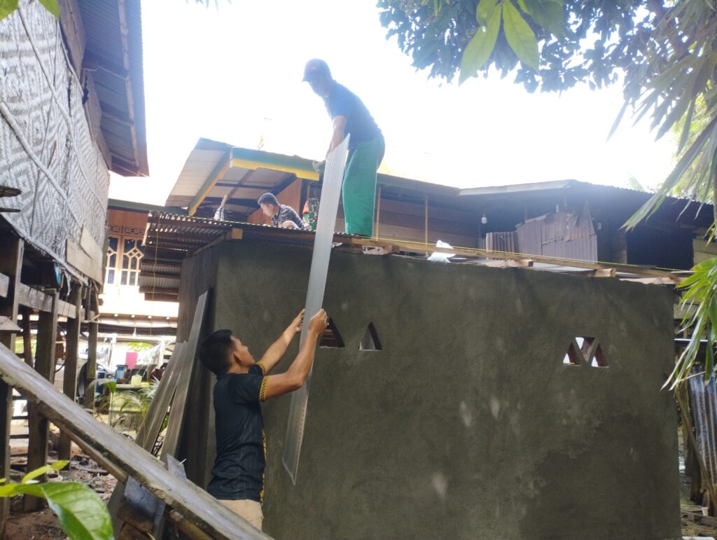 Pekerjaan konstruksi MCK tersebut kini telah memasuki tahap signifikan, yakni pemasangan atap, lest plang, pemasangan keramik, dan pekerjaan plamur dinding. Seluruh proses ini dilaksanakan langsung oleh para personel Satgas TMMD di bawah pengawasan dan arahan Pasiter Kodim 1406/Wajo, Kapten Inf Zabir.