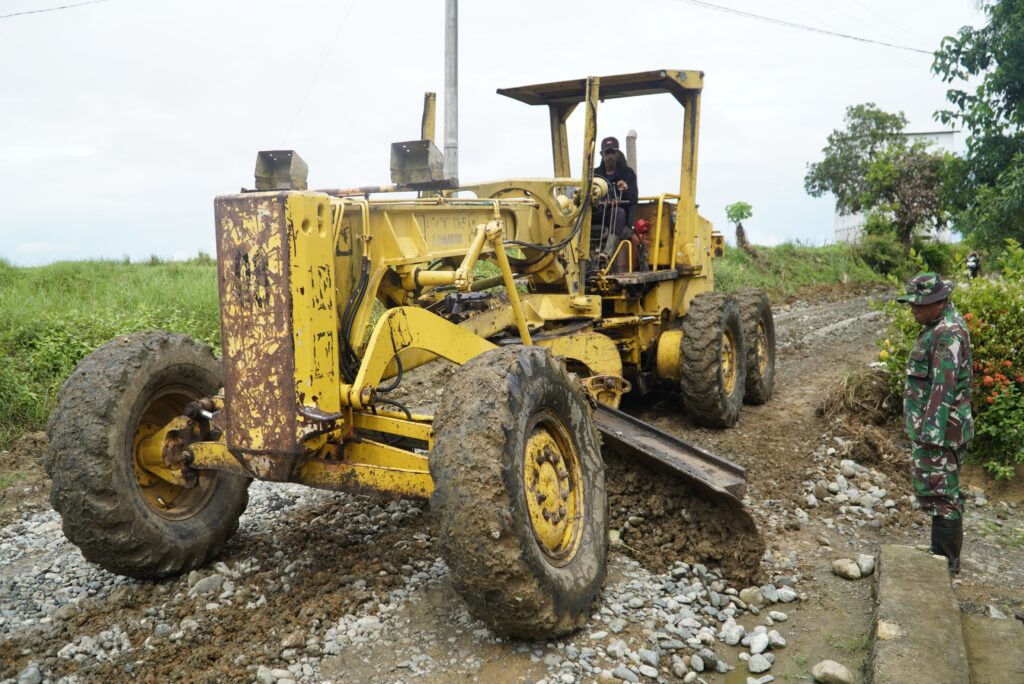 Wajo Sulsel Okeindonesia.online- Meski bertepatan dengan hari libur, semangat gotong royong dan pengabdian kepada masyarakat tetap bergelora di Desa Temmabarang, Kecamatan Penrang, Kabupaten Wajo. Personel Satuan Tugas TNI Manunggal Membangun Desa (TMMD) ke-124 Kodim 1406/Wajo bersama Dinas Pekerjaan Umum Kabupaten Wajo terus menggenjot pengerjaan fisik berupa perataan jalan dengan menggunakan alat berat jenis grader. Minggu 1/6/2025.