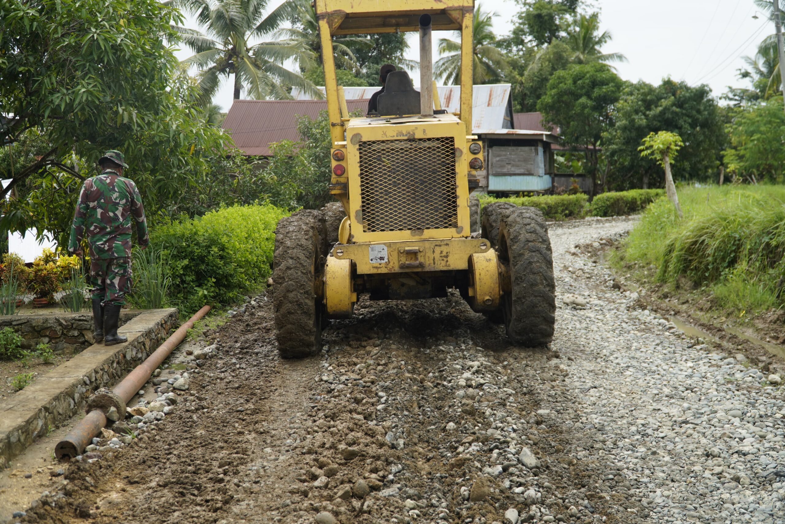 Kegiatan ini dipimpin langsung oleh Dan SSK TMMD ke-124, Letda Inf Kamistan. Dalam pelaksanaannya, tim bahu-membahu menciptakan permukaan jalan yang rata dan kemiringan yang tepat guna menunjang sistem drainase yang optimal. Proyek ini merupakan bagian dari upaya percepatan pembangunan infrastruktur desa dalam program TMMD yang menyasar wilayah terpencil dan kurang terjangkau.