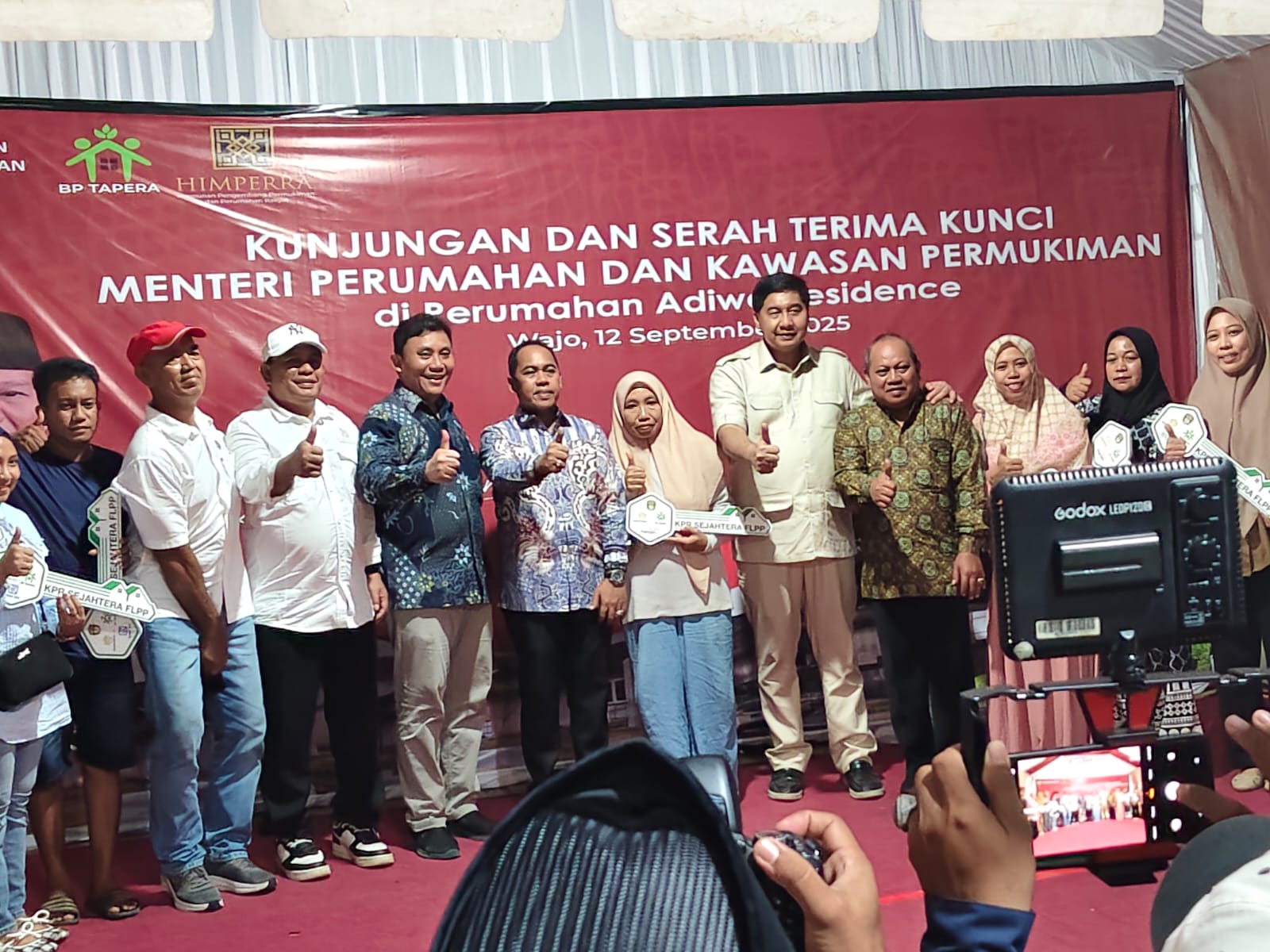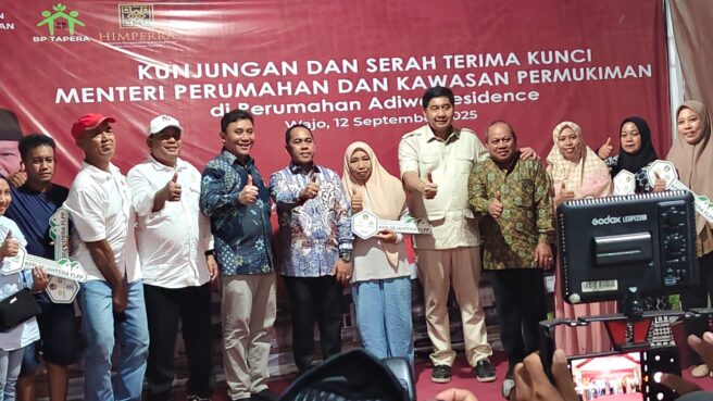 Dengan terlaksananya serah terima kunci bagi para penerima manfaat di Perumahan Adiwa Residence, Kabupaten Wajo, resmi menambah daftar daerah yang berhasil merealisasikan program strategis nasional 3.000 unit rumah di bidang perumahan.