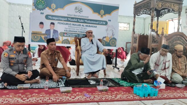 Kegiatan Maulid Nabi di Masjid Al Mubarak juga dirangkaikan dengan doa bersama, ceramah agama, serta pembacaan shalawat sebagai bentuk rasa cinta kepada Rasulullah SAW. Kehadiran pemerintah, aparat kepolisian, tokoh agama, dan masyarakat setempat menambah suasana semakin hangat dalam bingkai kebersamaan.