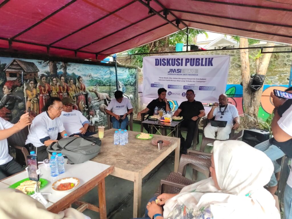 Wajo Sulsel Okeindonesia.online- Jaringan Media Siber Indonesia (JMSI) Kabupaten Wajo menggelar diskusi publik bertema “Peran Media Siber dalam Mengawal Ranperda Keterbukaan Informasi Publik Menuju Wajo yang Terbuka dan Transparan”, Minggu (23/11/2025). Kegiatan berlangsung di Taman Baca, Kantor Dinas Perpustakaan Wajo, diikuti jurnalis, Pemerhati kebijakan publik, dan berbagai unsur masyarakat.