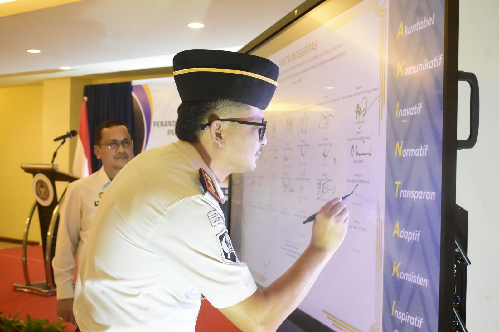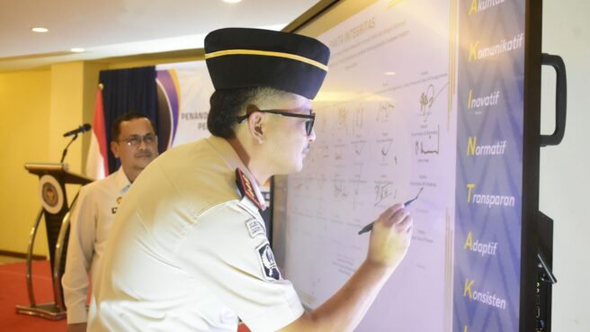 Makassar Sulsel Okeindonesia.online- Kepala Rumah Tahanan Negara (Karutan) Kelas IIB Sengkang turut melakukan penandatanganan Pakta Integritas bersama seluruh Kepala Unit Pelaksana Teknis (Ka UPT) Pemasyarakatan se-Sulawesi Selatan, yang dipimpin langsung oleh Kepala Kantor Wilayah Direktorat Jenderal Pemasyarakatan Sulawesi Selatan, Kamis (05/02).