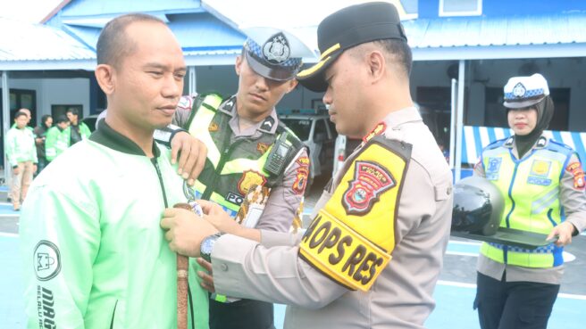 Dalam kesempatan itu, dilakukan deklarasi ojol yang diikuti seluruh peserta, penyematan pin “Polantas Mappatabe”, serta pemasangan helm kepada perwakilan komunitas ojek online sebagai simbol komitmen keselamatan.