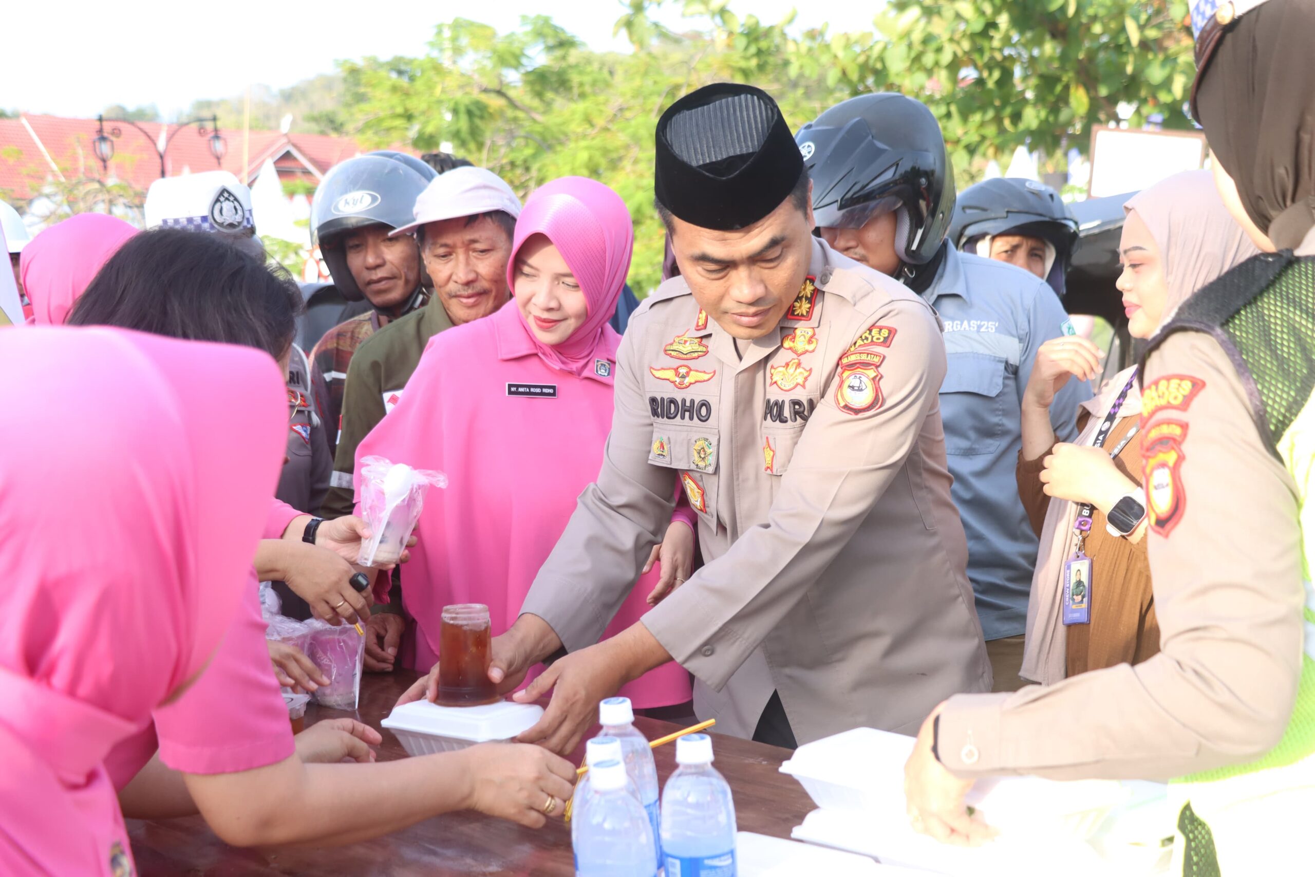 Dipimpin oleh Muhammad Rosid Ridho, jajaran Sat Lantas bersama Bhayangkari Cabang Wajo turun langsung menyapa masyarakat dan membagikan paket takjil kepada pengendara mobil, bemor, sepeda motor, hingga pejalan kaki yang melintas. Kehadiran Kapolres di tengah warga menjelang waktu berbuka puasa disambut antusias dan penuh kehangatan.